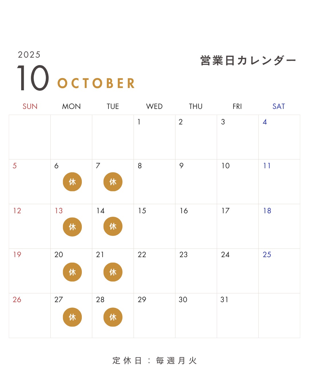 営業日カレンダー
