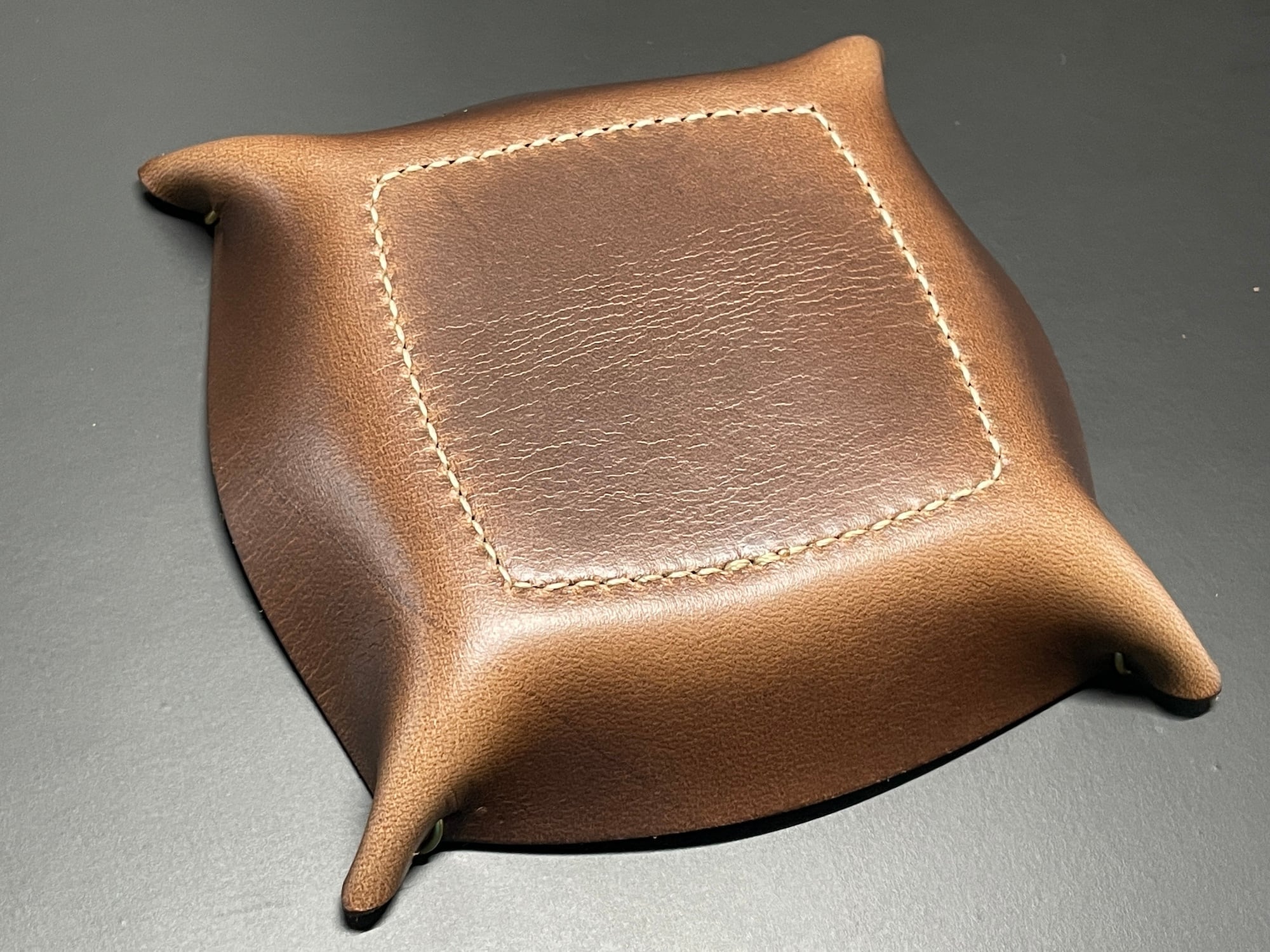 クロムエクセルレザーが小物をやさしく受け止め、置くたびにほのかな革の香りが漂います。