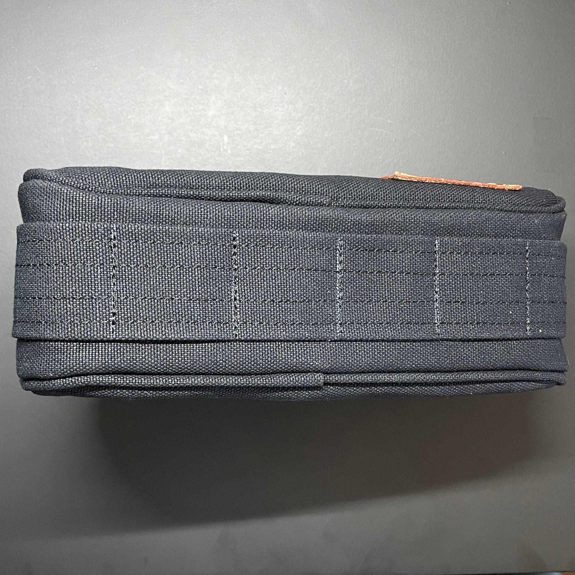 材質:8号帆布(パラフィン加工済)、ナイロン(裏地)、革(タグ、ファスナー引手、中敷き)